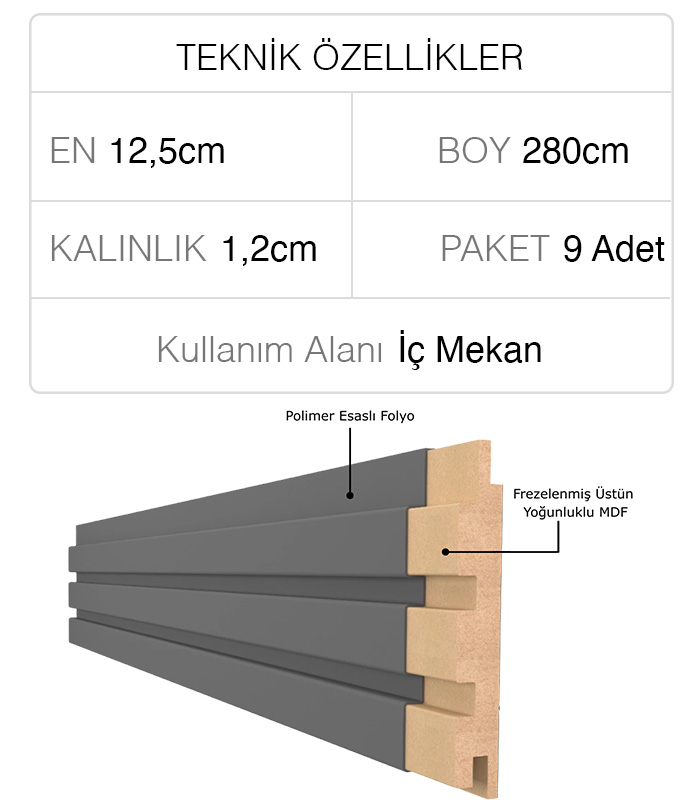 MDF Duvar Paneli 12,5×280×1,2 cm – Soft PVC Kaplamalı | 1. Sınıf MDF